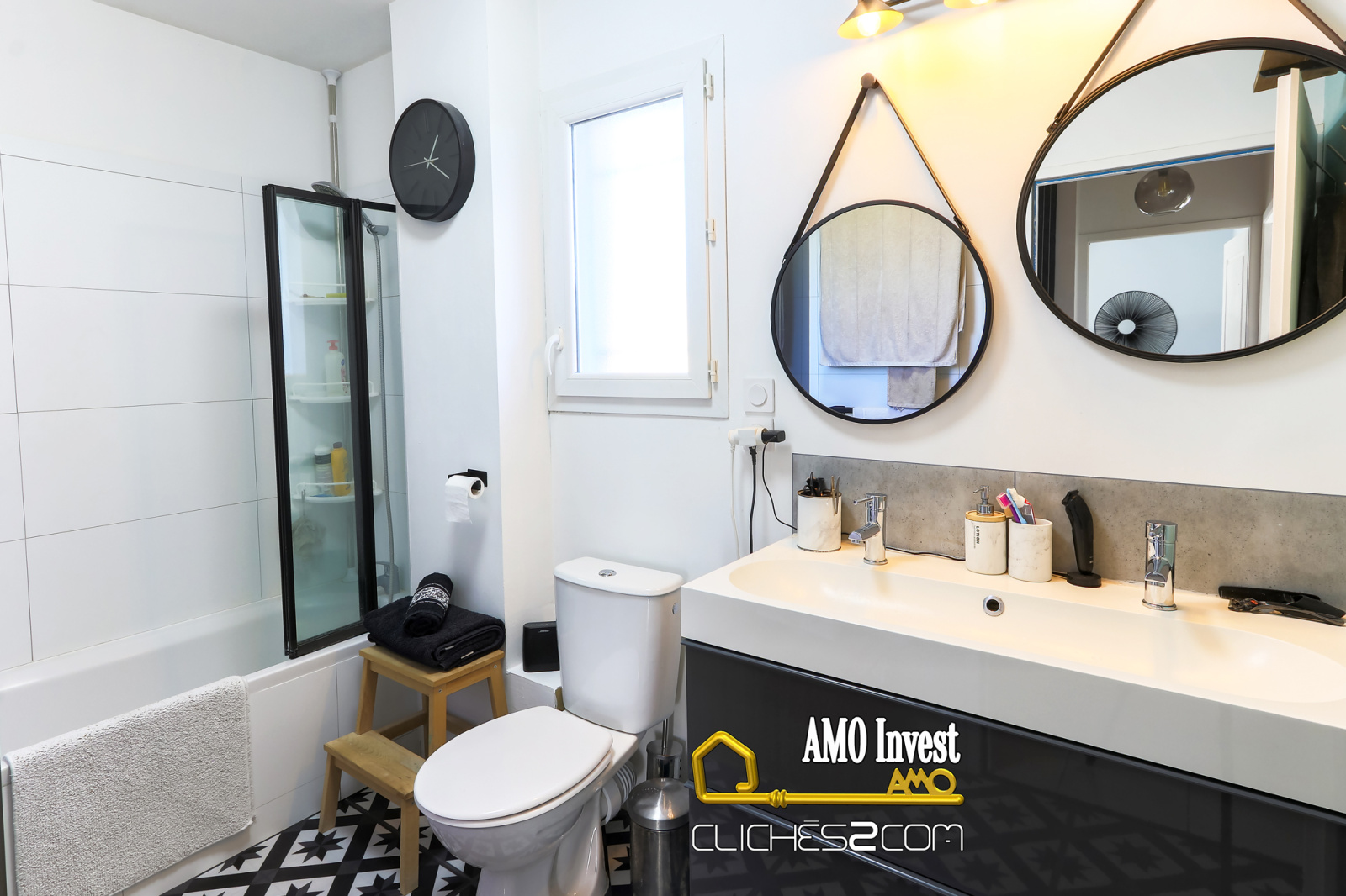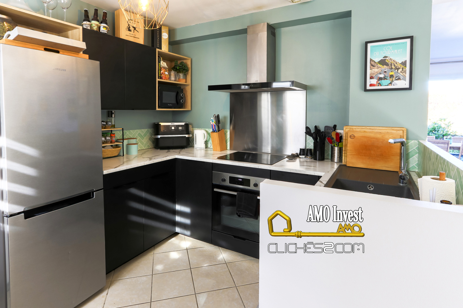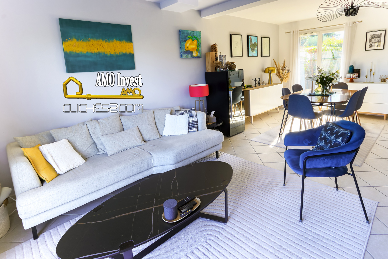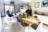 Elle est composée d'un salon séjour très lumineux avec cuisine ouverte toute équipée, 3 chambres à l'étage, 2 WC, salle de bains et nombreux rangements + garage et 2 places de parking privatives.