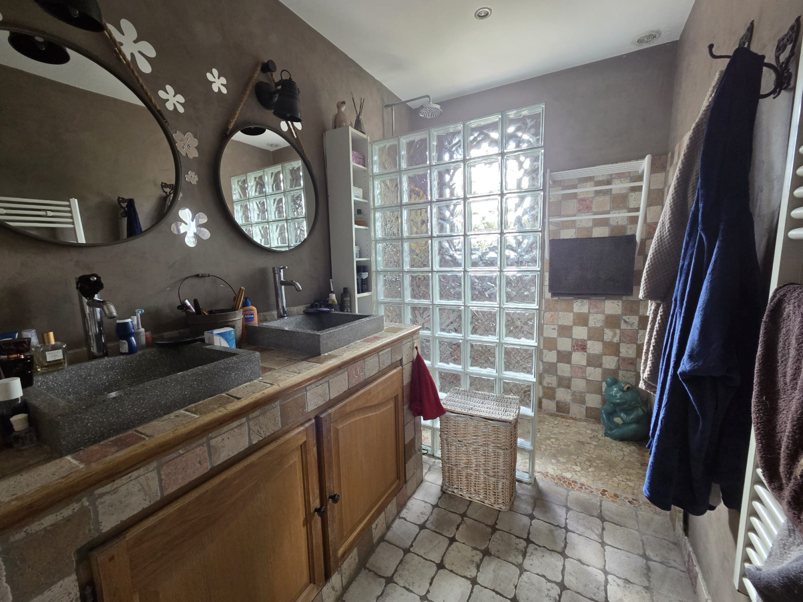 Les équipements: Climatisation, poêle à bois, portail automatique, arrosage automatique, forage, adoucisseur, alarme, isolation de comble refaite.
