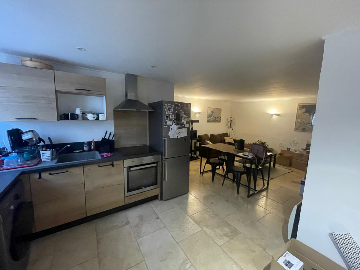 Le bien est composé d'un espace séjour/cuisine d'environ 30m², d'une chambre avec rangement d'environ 12m² et d'une salle d'eau avec wc.