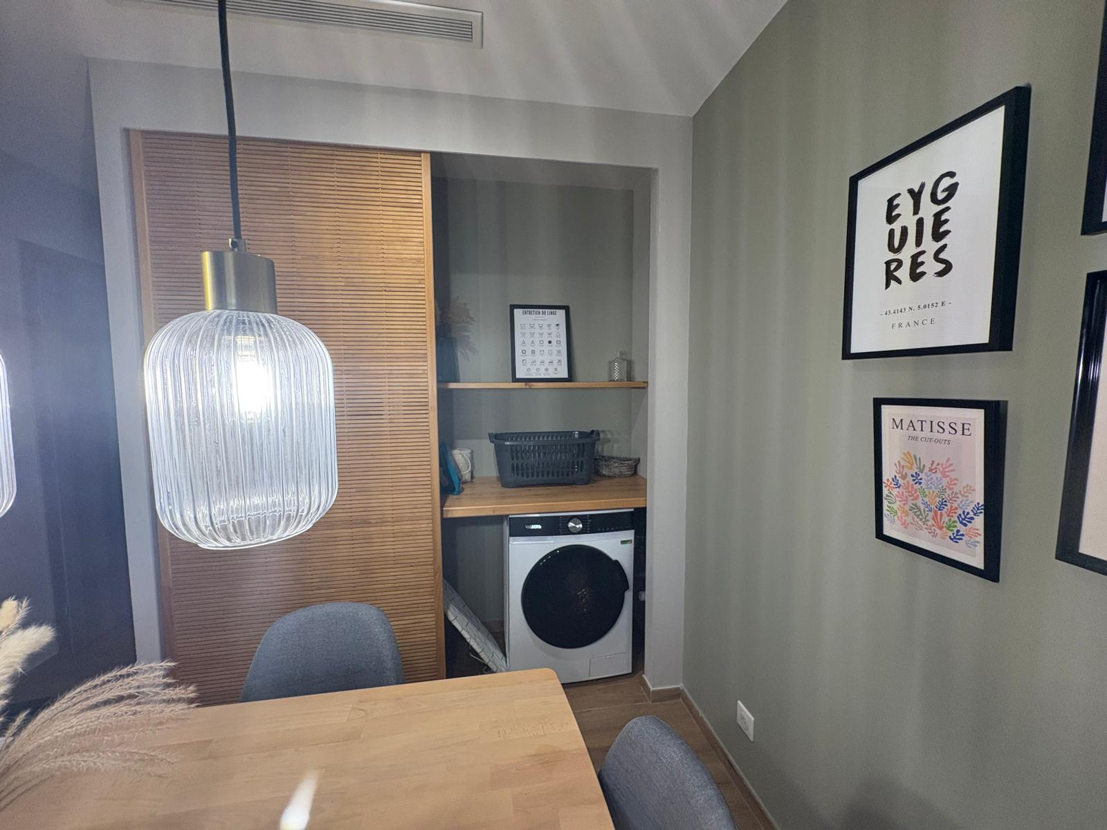 Maison meublée récente d’environ 65 m² située sur la commune d’Eyguières. Elle se compose d’une cuisine entièrement équipée, d’un salon-séjour lumineux ouvrant sur une agréable terrasse, de deux chambres disposant chacune de leur salle d’eau, dont une avec WC, ainsi qu’un WC indépendant.