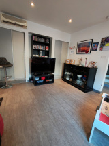 entrée sur le salon-séjour avec cuisine ouverte entièrement équipée, nombreux espaces de rangement, WC au rdc + 1 chambre de 11.5 m², bureau et salle d'eau à l'étage.