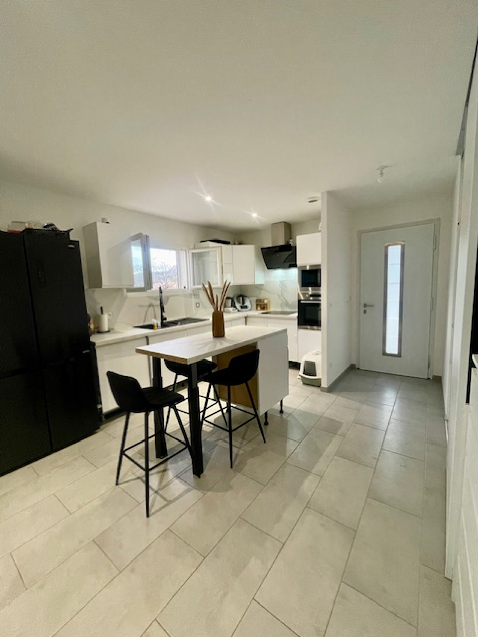 Idéalement placée proche de toutes commodités, cette maison de 2020 comprend : une entrée avec placard, une cuisine aménagée et équipée ouverte sur un séjour lumineux grâce à sa baie vitrée