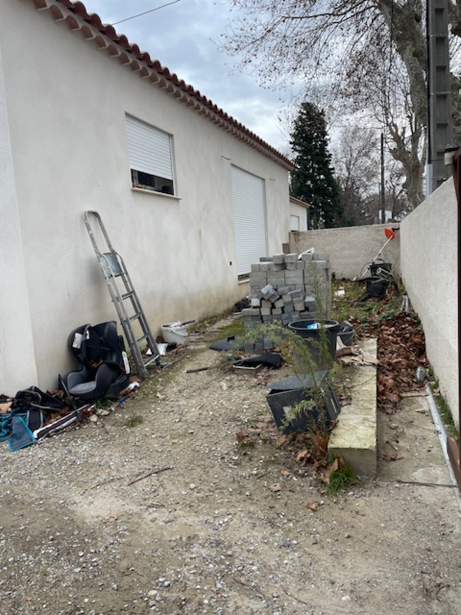 L'extérieur vous permettra de garer votre véhicule à l'intérieur du bien tout en gardant un espace jardin et détente des deux côtés de la maison.